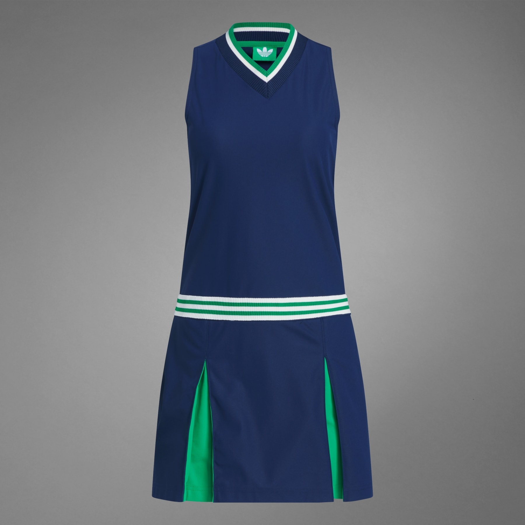 A golf dress with classic adidas style, made with recycled materials. Elevate your style in this dress from the adidas Originals golf collection. Four-way stretch lets you swing and move freely while the classic style brings a legacy look to the course and the clubhouse. This product is made with 100% recycled materials. By reusing materials that have already been created, we help to reduce waste and our reliance on finite resources and reduce the footprint of the products we make. Details - Regular fit - V-neck - 100% polyester (80% recycled) - Side zip pockets - One back pocket - Curved hem - Four-way stretch fabric - Ultraviolet Protect Factor (UPF) - Imported - Product code: JF6394 - Product color: Night Indigo