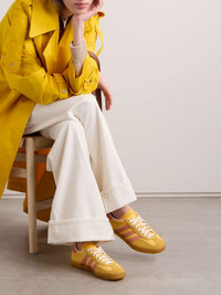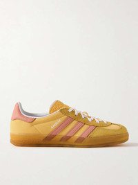 EDITORS'NOTES adidas Originals' 'Gazelle Indoor' sneakers were initially released in the '70s as an indoor sports shoe and have since grown to become an iconic streetwear staple. This iteration is made from saffron nylon with suede and leather trims and gummed rubber soles. SIZE & FIT Fits true to size, please refer to Adidas size guide below: - UK 3.5 = US 5/ EU 36 - UK 4 = US 5.5/ EU 36.7 - UK 4.5 = US 6/ EU 37.3 - UK 5 = US 6.5/ EU 38 - UK 5.5 = US 7/ EU 38.7 - UK 6 = US 7.5/ EU 39.3 - UK 6.5 = US 8/ EU 40 - UK 7 = US 8.5/ EU 40.7 - UK 7.5 = US 9/ EU 41.3 - UK 8 = US 9.5/ EU 42 - UK 8.5 = US 10/ EU 42.7 - UK 9 = US 10.5/ EU 43.3 - UK 9.5 = US 11/ EU 44 - UK 10 = US 11.5/ EU 44.7 - UK 10.5 = US 12/ EU 45.3 - UK 11 = US 12.5/ EU 46 - UK 11.5 = US 13/ EU 46.7 - UK 12 = US 13.5/ EU 47.3 DETAILS & CARE - Rubber sole measures approximately 20mm/ 1 inch - Saffron nylon and suede (Pig), saffron, antique-rose and white leather (Cow) - Lace-up front - Designer color: Semi Spark/ Wonder Clay/ Cloud White - adidas Originals follows its own size guide, therefore the size stated on the box will differ from the one provided in our size chart. To receive your correct fit, please refer to Size & Fit notes