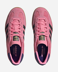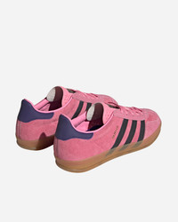 Game recognizes game with the resurgent adidas Originals Gazelle Indoor. Drafted this time around with a blissful pink suede base, the upper is accented by serrated black leather strips along the laterals while a swatch of lilac leather rounds the heel. Flat pink laces are set above a textured tongue before we drop into a gum rubber midsole with a treaded outsole. Size & Fit: We recommend you size up a half size Normal fit Details: Suede and Leather Upper Rubber Outsole Sizing: WOMENS Article Number: IE7002 Product color: BLIPNK/CBLACK/CPURPL