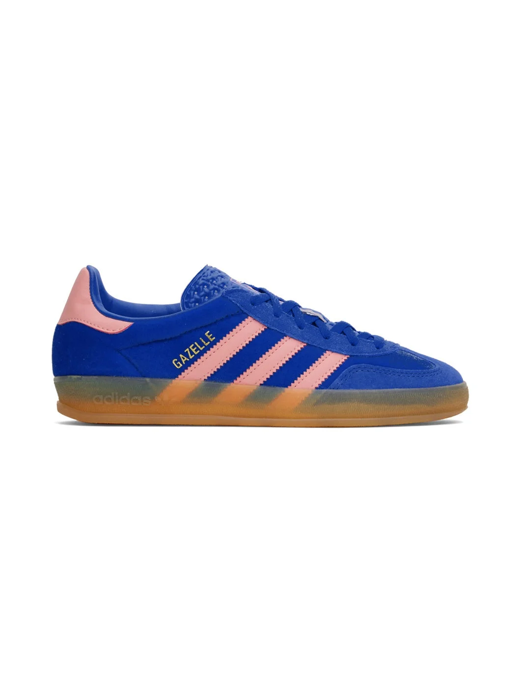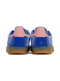 Low-top velvet and suede sneakers in blue and pink. · Lace-up closure · Logo printed at perforated and textured tongue · Padded collar · Signature serrated stripes at sides · Logo stamp at outer side · Buffed leather lining · Logo embossed at outer midsole · Semi-transparent treaded gum rubber sole Supplier color: Blue/Semi pink spark/Gum Upper: leather. Sole: rubber. Made in Viet Nam 242751F128054