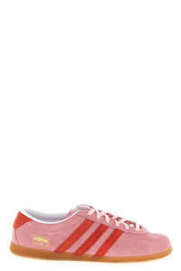 cod. IH6945PINSPAREDGUM3 Gazelle Lo Pro' suede sneakers with contrast heel and side stripes, low profile, tone-on-tone T-stitching, side and tongue logo print, fabric lining, lace-up closure, rubber sole. Color: Pink Size & Fit: ADIDAS UK WOMAN Composition: 100% calfskin leather (Bos Taurus) Made in: Vietnam