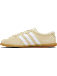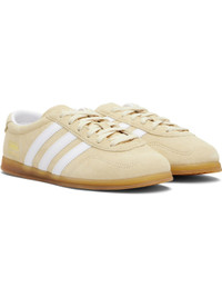 Low-top suede sneakers. · Lace-up closure · Logo printed at tongue · Padded collar · Signature serrated stripes at sides · Logo and text stamp at outer side · Jersey lining · Treaded rubber sole Supplier color: Sand strata/Cloud white/Gum Upper: leather. Sole: rubber. Made in Indonesia 252751F128142