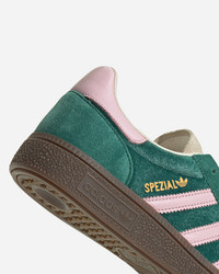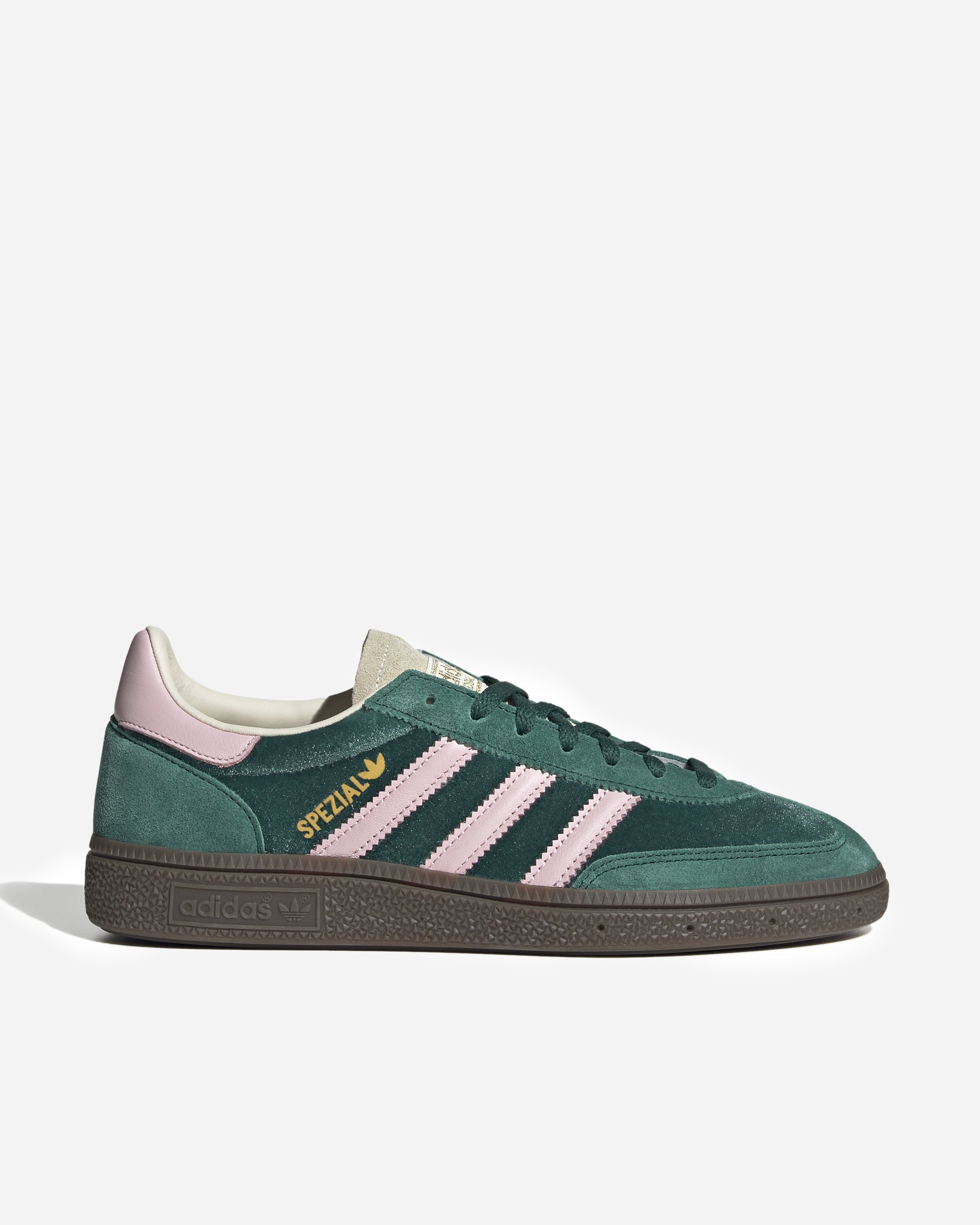 Discover the essence of timeless style and performance with the adidas Originals Handball Spezial a standout addition to our footwear collection. Designed for sneaker aficionados, this model brings together a rich heritage with modern flair. Originally crafted for elite-level handball in 1979, the Handball Spezial has been re-imagined, retaining its vintage suede upper and distinctive gum sole while incorporating contemporary updates for a superior fit and comfort. As a crucial member of the NAKED Copenhagen family, this shoe epitomizes both functionality and fashion, making it an essential for any sneaker rotation. Size & Fit: This shoe runs true to size Sizing: WOMENS Article Number: JI2648 Product color: GREEN/CLPINK/CREWHT