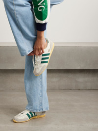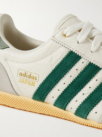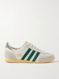 adidas Originals' 'Japan' sneakers have a low profile that's easy to style with just about anything. This pair is made from white leather with gray heel tabs and contrasting suede stripes. Perforations throughout ensure a breathable feel. Size & Fit Fits true to size, please refer to Adidas size guide below: - UK 3.5 = US 5/ EU 36 - UK 4 = US 5.5/ EU 36.7 - UK 4.5 = US 6/ EU 37.3 - UK 5 = US 6.5/ EU 38 - UK 5.5 = US 7/ EU 38.7 - UK 6 = US 7.5/ EU 39.3 - UK 6.5 = US 8/ EU 40 - UK 7 = US 8.5/ EU 40.7 - UK 7.5 = US 9/ EU 41.3 - UK 8 = US 9.5/ EU 42 - UK 8.5 = US 10/ EU 42.7 - UK 9 = US 10.5/ EU 43.3 - UK 9.5 = US 11/ EU 44 - UK 10 = US 11.5/ EU 44.7 - UK 10.5 = US 12/ EU 45.3 - UK 11 = US 12.5/ EU 46 - UK 11.5 = US 13/ EU 46.7 - UK 12 = US 13.5/ EU 47.3 Details & Care - Rubber sole measures approximately 20mm/ 1 inch - Tonal-green and gray suede, white perforated leather (Cow) - Lace-up front - Designer color: Off white/ Collegiate Green/ Orange Tint - adidas Originals follows its own size guide, therefore the size stated on the box will differ from the one provided in our size chart. To receive your correct fit, please refer to Size & Fit notes