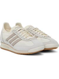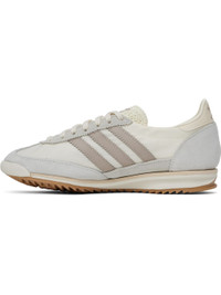 Low-top suede and canvas sneakers in off-white and taupe. · Lace-up closure · Logo stamp and perforations at textured tongue · Padded collar · Signature serrated stripes at sides · Logo embossed at buffed leather heel tab · Buffed faux-leather and mesh lining · Logo embossed at foam rubber midsole · Treaded rubber sole Supplier color: Off white/Wonder taupe/Wonder white Upper: leather. Sole: rubber. Made in Indonesia 251751F128196