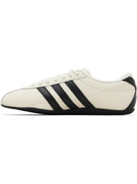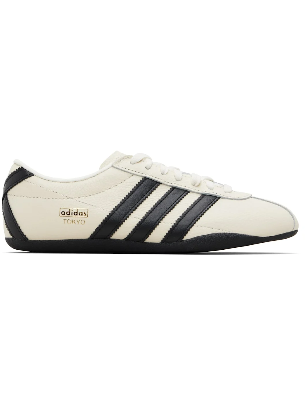 Low-top grained leather sneakers. · Lace-up closure · Logo printed at tongue and side · Serrated leather stripes at sides and heel · Rubber sole Supplier color: Off White/Core Black/Gold Metallic Upper: leather. Sole: rubber. Made in Viet Nam 261751F128181