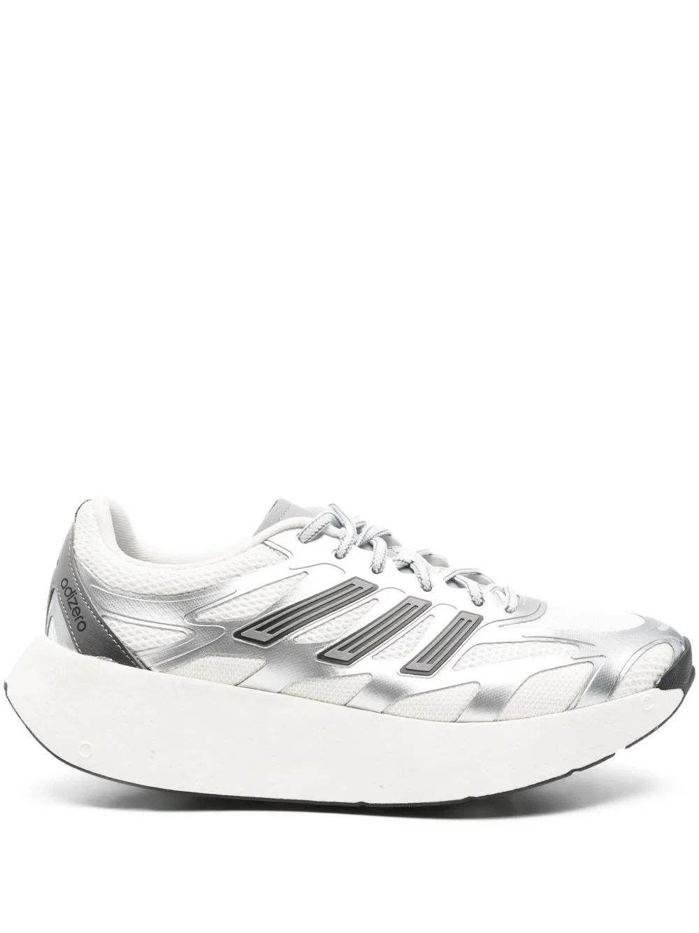 panelled sneakers Highlights - White - Metallic silver panels - Lace-up fastening - Three stripes logo - Platform sole - Mesh panelling Imported Composition Outer: Fabric 100%, Polyurethane 100% Lining: Fabric 100% Sole: Rubber 100%