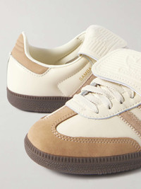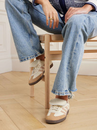 EDITORS'NOTES adidas Originals' 'Samba LT' sneakers are defined by the exaggerated, logo-embossed tongues inspired by retro football boots. They're crafted from leather with contrasting suede stripes at the sides and nubuck toe caps. The rubber gum soles ensure plenty of grip and traction. SIZE & FIT Fits true to size, please refer to Adidas size guide below: - UK 3.5 = US 5/ EU 36 - UK 4 = US 5.5/ EU 36.7 - UK 4.5 = US 6/ EU 37.3 - UK 5 = US 6.5/ EU 38 - UK 5.5 = US 7/ EU 38.7 - UK 6 = US 7.5/ EU 39.3 - UK 6.5 = US 8/ EU 40 - UK 7 = US 8.5/ EU 40.7 - UK 7.5 = US 9/ EU 41.3 - UK 8 = US 9.5/ EU 42 - UK 8.5 = US 10/ EU 42.7 - UK 9 = US 10.5/ EU 43.3 - UK 9.5 = US 11/ EU 44 - UK 10 = US 11.5/ EU 44.7 - UK 10.5 = US 12/ EU 45.3 - UK 11 = US 12.5/ EU 46 - UK 11.5 = US 13/ EU 46.7 - UK 12 = US 13.5/ EU 47.3 DETAILS & CARE - Rubber sole measures approximately 20mm/ 1 inch - Cream leather, sand nubuck and suede (Cow) - Lace-up front - adidas Originals follows its own size guide, therefore the size stated on the box will differ from the one provided in our size chart. To receive your correct fit, please refer to Size & Fit notes