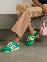EDITORS'NOTES adidas Originals' ‘SL 72 OG’ sneakers pay homage to the brand’s sporting heritage - they were popularized by athletes at the Olympics who wore them as part of their podium outfits. Made from canvas trimmed with leather and suede, this iteration has a low profile complete with a textured tongue and the iconic '3-Stripes'. SIZE & FIT Fits true to size, please refer to Adidas size guide below: - UK 3.5 = US 5/ EU 36 - UK 4 = US 5.5/ EU 36.7 - UK 4.5 = US 6/ EU 37.3 - UK 5 = US 6.5/ EU 38 - UK 5.5 = US 7/ EU 38.7 - UK 6 = US 7.5/ EU 39.3 - UK 6.5 = US 8/ EU 40 - UK 7 = US 8.5/ EU 40.7 - UK 7.5 = US 9/ EU 41.3 - UK 8 = US 9.5/ EU 42 - UK 8.5 = US 10/ EU 42.7 - UK 9 = US 10.5/ EU 43.3 - UK 9.5 = US 11/ EU 44 - UK 10 = US 11.5/ EU 44.7 - UK 10.5 = US 12/ EU 45.3 - UK 11 = US 12.5/ EU 46 - UK 11.5 = US 13/ EU 46.7 - UK 12 = US 13.5/ EU 47.3 DETAILS & CARE - Rubber sole measures approximately 20mm/ 1 inch - Green canvas and suede, white leather - Lace-up front - Designer color: Court Green/ Ivory/ Crystal Sand - adidas Originals follows its own size guide, therefore the size stated on the box will differ from the one provided in our size chart. To receive your correct fit, please refer to Size & Fit notes