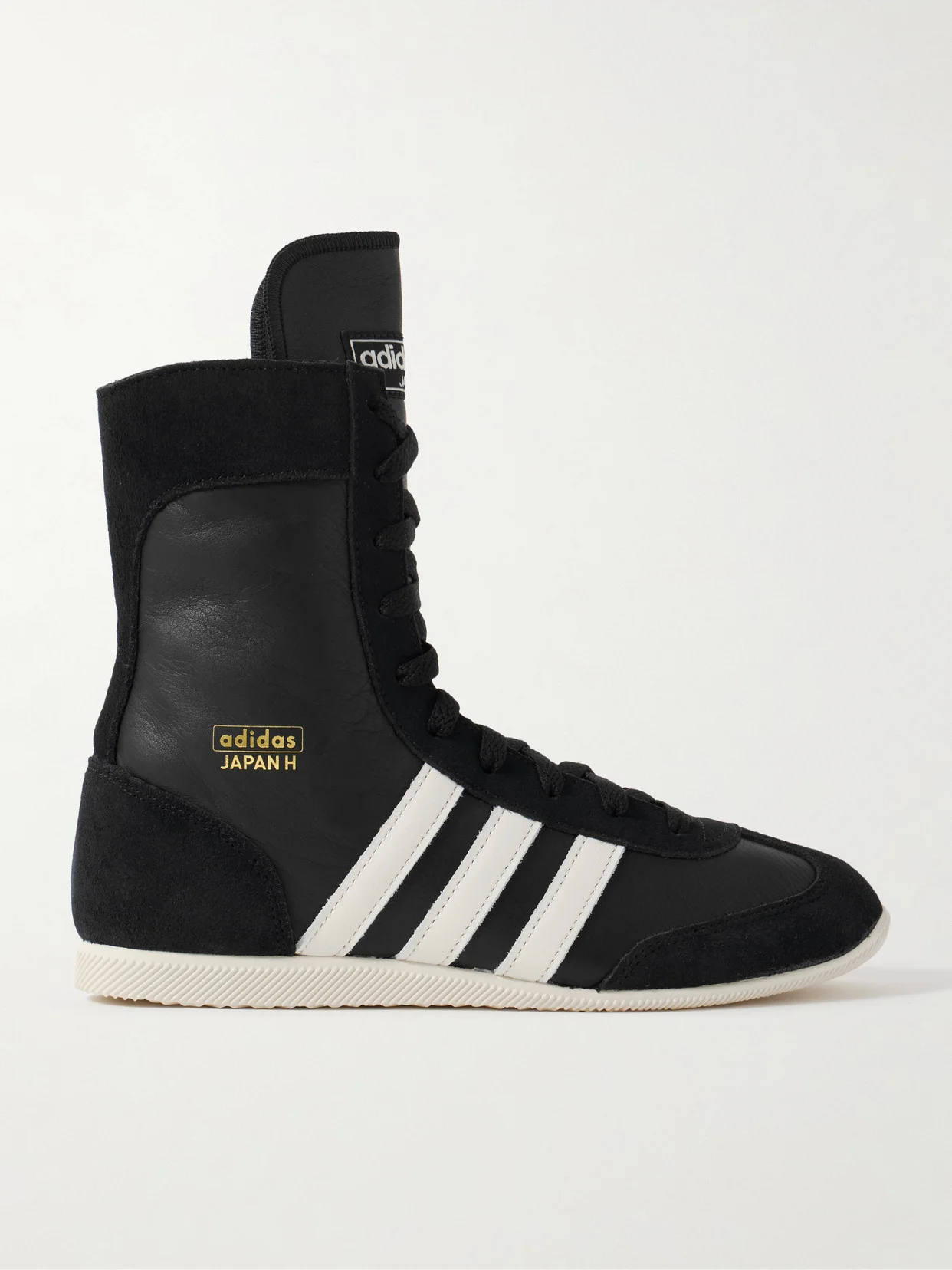 adidas Originals' 'Japan H' sneakers are a testament to the brand's long history of pushing boundaries when it comes to sportswear. Inspired by a pair of 'Knockout' boxing boots from the archives, they're made from leather and suede and detailed with the signature '3-Stripes' along the sides. The elongated tongue and slim rubber outsole are athletic touches.