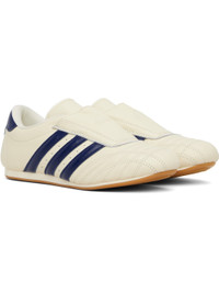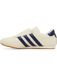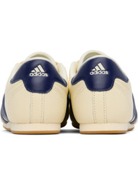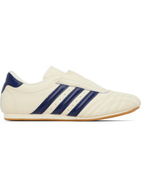 Low-top buffed leather sneakers. · Quilted detailing at toe · Logo embossed at vamp and heel tab · Concealed elasticized gusset · Padded tongue and collar · Signature stripes and perforations at sides · Buffed leather and mesh lining · Treaded rubber sole Supplier color: Cream white/Victory blue/Gum Upper: leather. Sole: rubber. Made in Viet Nam 252751F128052