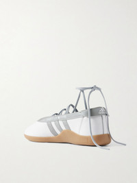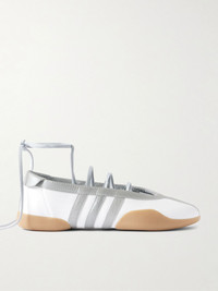 adidas Originals first launched its ballet flats in the early 2000s, and these 'Taekwondo Mei' sneakers are a contemporary riff on the archival style. Made from contrasts of smooth and metallic leather, they're threaded with foot-framing laces and come with additional pairs in varying lengths so you can customize your look. Size & Fit Fits true to size, please refer to Adidas size guide below: - UK 3.5 = US 5/ EU 36 - UK 4 = US 5.5/ EU 36.7 - UK 4.5 = US 6/ EU 37.3 - UK 5 = US 6.5/ EU 38 - UK 5.5 = US 7/ EU 38.7 - UK 6 = US 7.5/ EU 39.3 - UK 6.5 = US 8/ EU 40 - UK 7 = US 8.5/ EU 40.7 - UK 7.5 = US 9/ EU 41.3 - UK 8 = US 9.5/ EU 42 - UK 8.5 = US 10/ EU 42.7 - UK 9 = US 10.5/ EU 43.3 - UK 9.5 = US 11/ EU 44 - UK 10 = US 11.5/ EU 44.7 - UK 10.5 = US 12/ EU 45.3 - UK 11 = US 12.5/ EU 46 - UK 11.5 = US 13/ EU 46.7 - UK 12 = US 13.5/ EU 47.3 Details & Care - Rubber sole measures approximately 15mm/ 0.5 inches - White and silver leather (Cow) - Ties at ankle - adidas Originals follows its own size guide, therefore the size stated on the box will differ from the one provided in our size chart. To receive your correct fit, please refer to Size & Fit notes