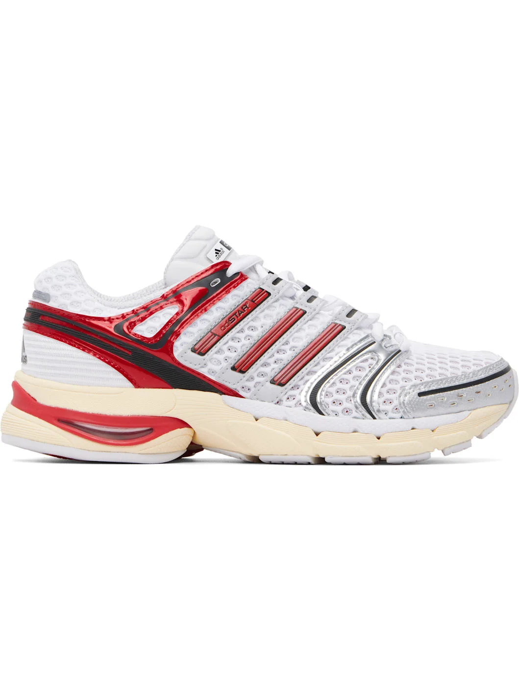Low-top mesh and buffed faux-leather sneakers. · Lace-up closure · Logo patch at padded tongue · Padded collar · Signature stripes at sides · Logo bonded at heel counter · Mesh lining · Foam rubber midsole · Treaded rubber sole Supplier color: Cloud White/Better Scarlet/Dash Grey Upper: textile, synthetic. Sole: rubber. Made in Viet Nam 261751F128092