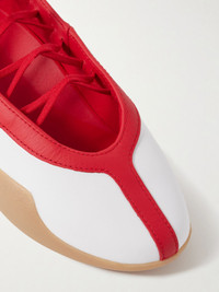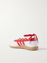 adidas Originals first launched its ballet flats in the early 2000s, and these 'Taekwondo Mei' sneakers are a contemporary riff on the archival style. Made from contrasts of smooth leather, they're threaded with foot-framing laces and come with additional pairs in varying lengths so you can customize your look. Size & Fit Fits true to size, please refer to adidas size guide below: - UK 3.5 = US 5/ EU 36 - UK 4 = US 5.5/ EU 36.7 - UK 4.5 = US 6/ EU 37.3 - UK 5 = US 6.5/ EU 38 - UK 5.5 = US 7/ EU 38.7 - UK 6 = US 7.5/ EU 39.3 - UK 6.5 = US 8/ EU 40 - UK 7 = US 8.5/ EU 40.7 - UK 7.5 = US 9/ EU 41.3 - UK 8 = US 9.5/ EU 42 - UK 8.5 = US 10/ EU 42.7 - UK 9 = US 10.5/ EU 43.3 - UK 9.5 = US 11/ EU 44 - UK 10 = US 11.5/ EU 44.7 - UK 10.5 = US 12/ EU 45.3 - UK 11 = US 12.5/ EU 46 - UK 11.5 = US 13/ EU 46.7 - UK 12 = US 13.5/ EU 47.3 Details & Care - Rubber sole measures approximately 15mm/ 0.5 inches - White and scarlet leather (Cow) - Ties at ankle - Designer color: Ftwr White/ Better Scarlet/ Gum 3 - adidas Originals follows its own size guide, therefore the size stated on the box will differ from the one provided in our size chart. To receive your correct fit, please refer to Size & Fit notes