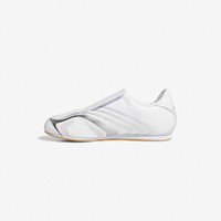 Designed to break out from the ordinary, adidas brings the energy of the game to everyday life with the Taekwondo F50. Reimagined for everyday wear, this pair introduces a fresh take on an iconic football shoe, combining its signature laceless design with a premium leather and synthetic upper alongside eye-catching metallic details, all riding on a super low-profile to emphasise the smooth, fluid shape further. - adidas Wmns Taekwondo F50 - Regular fit - Leather and synthetic upper - Textile lining - Laceless - Rubber outsole Article no: JR6404 Gender: Women Color: ftwr white/silver met./iron met.
