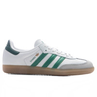 The Women's Samba OG in Cloud White/Bold Green/Collegiate Green brings timeless design and premium craftsmanship together. Featuring a full-grain leather upper with leather overlays, Adidas branding is shown with the signature 3-Stripes and a raised Trefoil logo. A lace closure ensures a secure fit, while the synthetic leather lining adds comfort. Finished with a gum rubber outsole for traction and style, the Samba OG remains an icon in any rotation. - Full-grain leather upper - Leather overlays - Lace closure - Synthetic leather lining - Raised Trefoil logo - Adidas branding - Signature T-toe - Gum rubber outsole - All sizes are listed in U.S. Women's sizing unless stated otherwise - Style No: IH6630