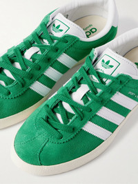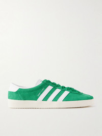 Designed with Sporty & Rich, adidas Originals' sneakers are worth collecting thanks to the tennis racket charm, which can be attached to their laces. A reissue of the iconic 1991 'Gazelle', they're made from suede with the signature leather '3-Stripes' on the sides and have a co-branded tongue and rubber outsoles. Size & Fit Fits true to size, please refer to Adidas size guide below: - UK 3.5 = US 5/ EU 36 - UK 4 = US 5.5/ EU 36.7 - UK 4.5 = US 6/ EU 37.3 - UK 5 = US 6.5/ EU 38 - UK 5.5 = US 7/ EU 38.7 - UK 6 = US 7.5/ EU 39.3 - UK 6.5 = US 8/ EU 40 - UK 7 = US 8.5/ EU 40.7 - UK 7.5 = US 9/ EU 41.3 - UK 8 = US 9.5/ EU 42 - UK 8.5 = US 10/ EU 42.7 - UK 9 = US 10.5/ EU 43.3 - UK 9.5 = US 11/ EU 44 - UK 10 = US 11.5/ EU 44.7 - UK 10.5 = US 12/ EU 45.3 - UK 11 = US 12.5/ EU 46 - UK 11.5 = US 13/ EU 46.7 - UK 12 = US 13.5/ EU 47.3 Details & Care - Rubber sole measures approximately 20mm/ 1 inch - White and green suede - Lace-up front - Designer color: Court Green/ Footwear White/ Off White - adidas Originals follows its own size guide, therefore the size stated on the box will differ from the one provided in our size chart. To receive your correct fit, please refer to Size & Fit notes