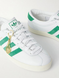 Designed in collaboration with Sporty & Rich, adidas Originals' sneakers draw inspiration from retro '70s styles. They're made from white leather and feature both brands' logos and the iconic '3-Stripes' in green, the latter of which is suede. The racket-shaped charm adorning the laces can be used on your keyring, too. Size & Fit Fits true to size, please refer to Adidas size guide below: - UK 3.5 = US 5/ EU 36 - UK 4 = US 5.5/ EU 36.7 - UK 4.5 = US 6/ EU 37.3 - UK 5 = US 6.5/ EU 38 - UK 5.5 = US 7/ EU 38.7 - UK 6 = US 7.5/ EU 39.3 - UK 6.5 = US 8/ EU 40 - UK 7 = US 8.5/ EU 40.7 - UK 7.5 = US 9/ EU 41.3 - UK 8 = US 9.5/ EU 42 - UK 8.5 = US 10/ EU 42.7 - UK 9 = US 10.5/ EU 43.3 - UK 9.5 = US 11/ EU 44 - UK 10 = US 11.5/ EU 44.7 - UK 10.5 = US 12/ EU 45.3 - UK 11 = US 12.5/ EU 46 - UK 11.5 = US 13/ EU 46.7 - UK 12 = US 13.5/ EU 47.3 Details & Care - Rubber sole measures approximately 20mm/ 1 inch - White and green leather, green suede - Lace-up front - adidas Originals follows its own size guide, therefore the size stated on the box will differ from the one provided in our size chart. To receive your correct fit, please refer to Size & Fit note