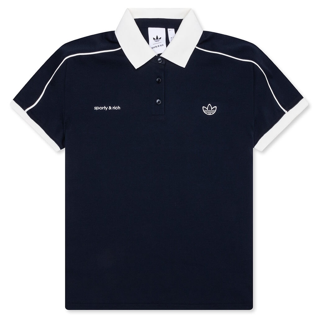 WOMEN'S ADIDAS X SPORTY & RICH POLO T-SHIRT - NIGHT NAVY