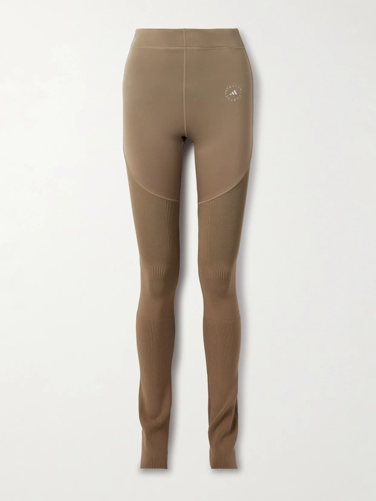 adidas by Stella McCartney's leggings have an intentionally long length that slouches at the ankle. They're made from panels of stretch recycled and ribbed-knit materials and feature the brand's logo stamped on the hip.