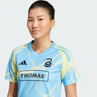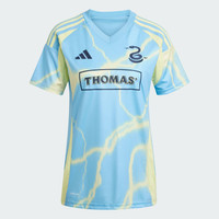 A Union supporter jersey inspired by their home city and made with recycled materials. Bringing the buzz of Philadelphia's street art scene to away games. This adidas Union jersey pulses with soccer energy thanks to spray paint-effect lightning bolts. Built for comfortable fandom, it teams moisture-managing AEROREADY and soft fabric. That simplified badge sewn onto the chest is joined by a primary club crest on the back neck. This product is made with 100% recycled materials. By reusing materials that have already been created, we help to reduce waste and our reliance on finite resources and reduce the footprint of the products we make. Details - Regular fit - V-neck - 100% polyester (recycled) - AEROREADY - Side mesh inserts - Philadelphia Union sewn-on crest - Imported - Product code: IV5058 - Product color: Semi Blue Burst