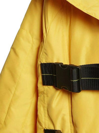 quilted buckle-strap jacket Highlights - Yellow - Quilted design - Buckle straps - High collar - Zip fastening - Arm zip pockets Imported Composition Polyester 100% Washing instructions Read Manufacturer Guidelines