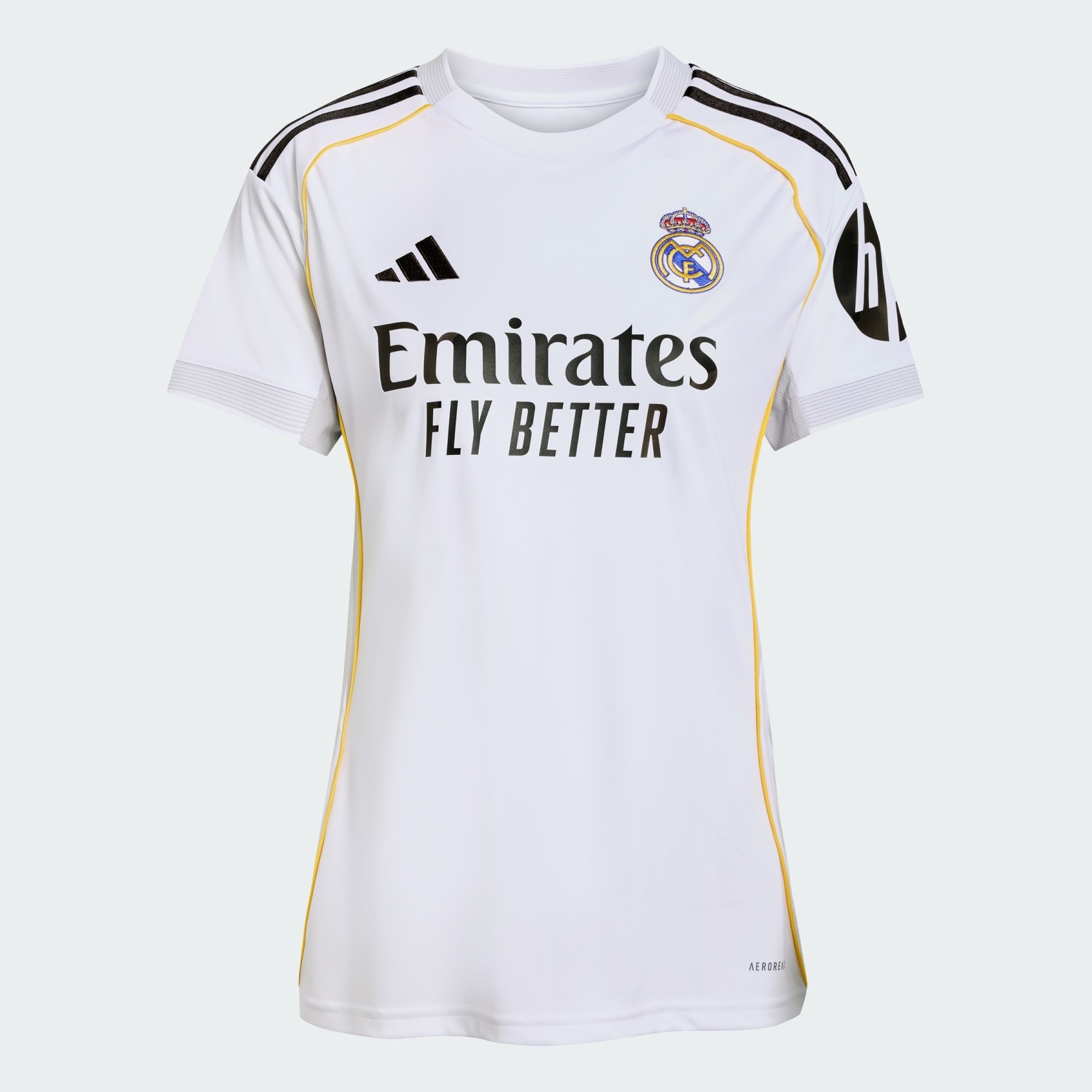 Honor Real Madrid's iconic home in this supporter-focused soccer jersey. Built on firm foundations. This adidas Real Madrid home jersey marks the Bernabeu's latest refurbishment with a design featuring subtle shapes, textures and colors borrowed from its long and storied history. Created to be worn at the legendary stadium in the 25/26 season, it fields moisture-managing AEROREADY for comfortable support and an embroidered club crest for unmatched pride. Details - Regular fit - Crewneck - 100% polyester (recycled) - AEROREADY - Real Madrid embroidered crest - Imported - Product code: JN8869 - Product color: White