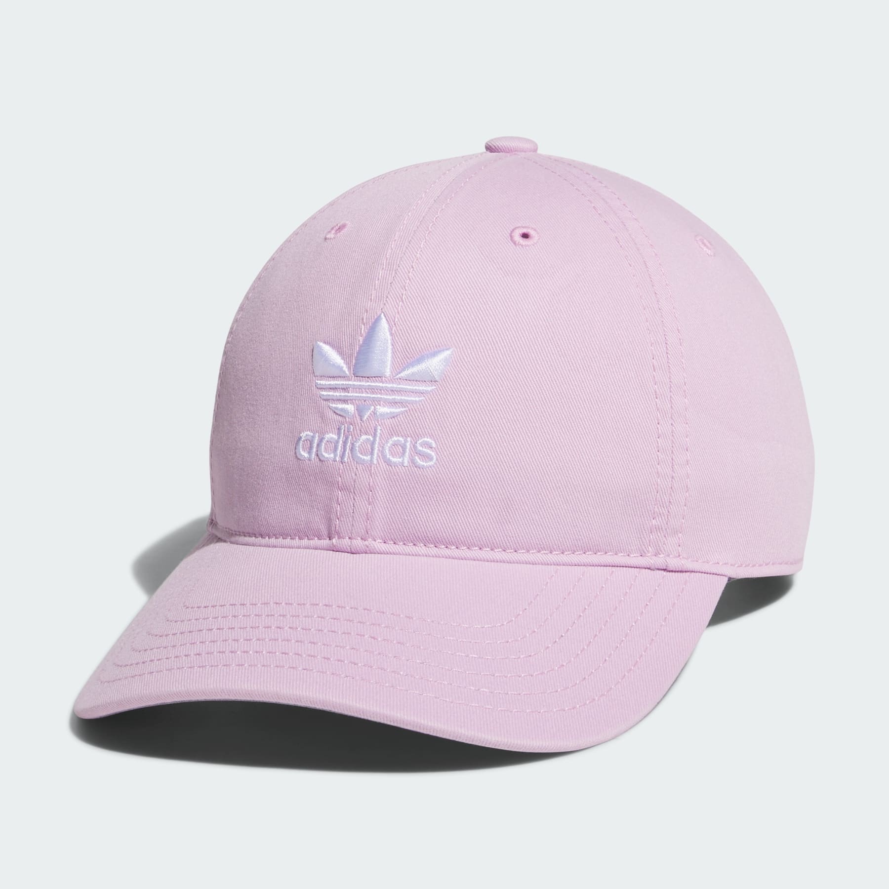 An adjustable hat with classic OG style. Relax into a weekend state of mind. No matter what day of the week it is, this adidas hat looks casual and effortlessly cool. It also shades your eyes, when your day takes you out into the sunshine. Details - One size fits most - 100% cotton - Pre-curved brim - Adjustable back strap - Relaxed six-panel construction - Embroidered Trefoil logo - Imported - Product code: JJ7495 - Product color: Light Orchid / White