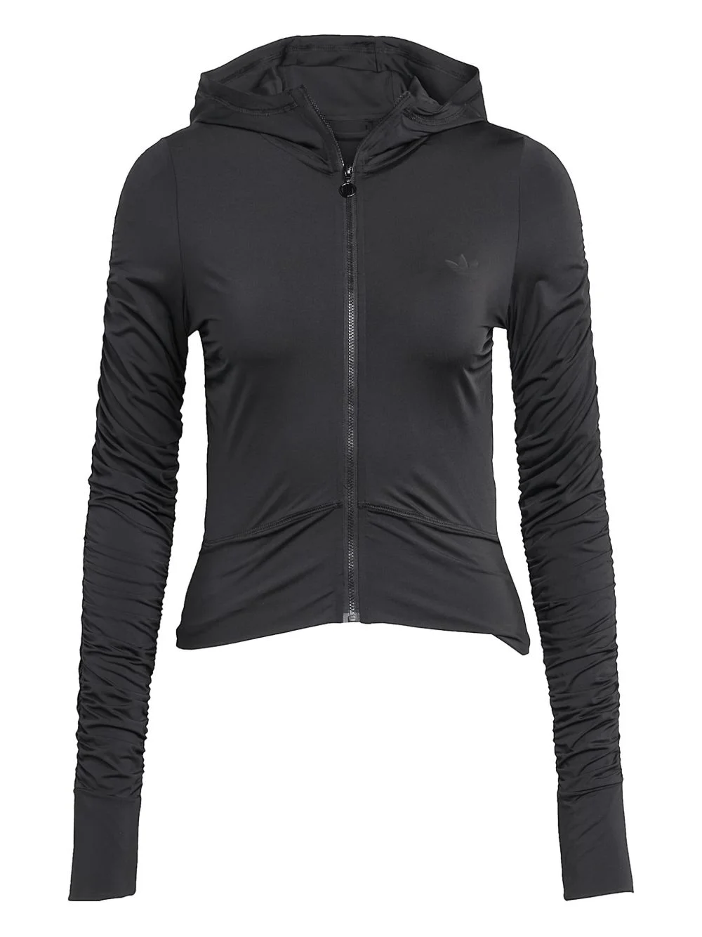 ruched zip-up woodie Highlights - Black - Ruched sleeves - Classic hood - Front zip fastening - Long sleeves Imported Composition Recycled Polyamide 88%, Elastane 12% Washing instructions Machine Wash