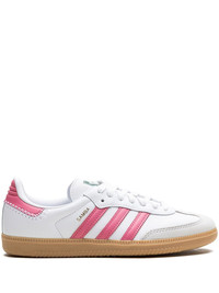 Samba OG "Rose Tone" sneakers Highlights - White - Pink - Calf leather - Calf suede - Logo stamp at side - Signature 3-stripes logo - Contrasting heel counter - Round toe - Front lace-up fastening - Logo-print tongue - Branded insole - Gum-rubber sole - These styles are supplied by a premium and authenticated sneaker marketplace. stocking only the most sought-after footwear, they source and curate some of the most hard to find sneakers from around the world. Imported Composition Leather 100%