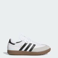 Spikeless golf shoes with heritage adidas style. Bring OG style to your next round with these adidas Samba Spikeless Golf Shoes. From the suede details on the leather upper to the iconic T-Toe, these shoes maintain the heritage look of the originals. Course-ready features like a cushioned midsole and rubber outsole designed for confident grip on fairways and greens let you play 18 in comfort, then head to the clubhouse in legacy style. Details - Regular fit - Lace closure - Full-grain leather and suede upper - Textile lining - Rubber outsole - Imported - Product code: JH6149 - Product color: Cloud White / Core Black / Gum