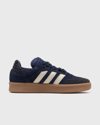 The adidas Samba XLG stays true to the authentic style of the original Samba with traditional elements like the signature T-toe and serrated leather 3-Stripes. A fresh update with hairy suede details and Samba branding in gold foil on the side complete the look. - Lace-up closure - Leather upper - Synthetic lining - Rubber outsole Article number: JS3827 Gender: men,women Color: NINDIG/CREWHT/GUM4 Material: 30% Rubber, 70% Leather
