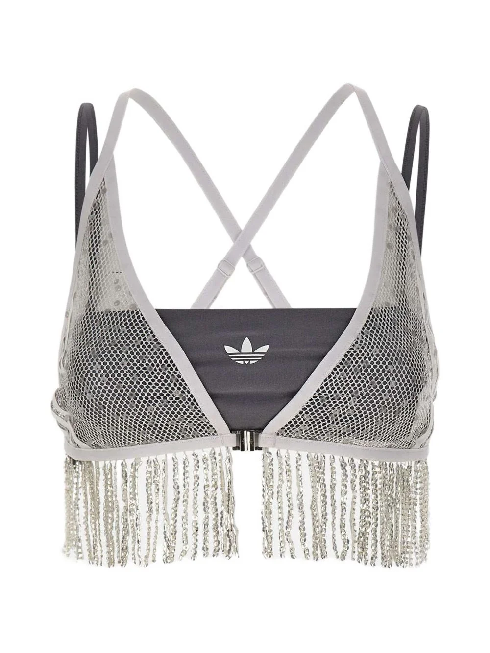 sequin fringed set top Highlights - Greys - Two-piece set - Sequin embellishment - Fringed hem - Logo print - Shoulder straps Imported Composition Outer: Polyester 77%, Spandex/Elastane 23% Lining: Polyester 88%, Spandex/Elastane 12%