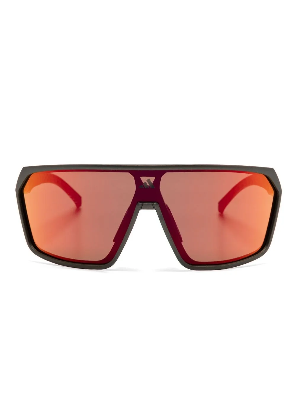 shield-frame sunglasses Highlights - Khaki - Nose pads - Sculpted arms - Curved tips - These glasses come with a protective case. Made in Italy Composition Outer: Acetate 100% SIZE & FIT Measurement Arm Length 5.11 in(13 cm) Bridge Width 0.66 in(1.7 cm) Lens Diameter 5.7 in(14.5 cm) Total Width 5.7 in(14.5 cm)