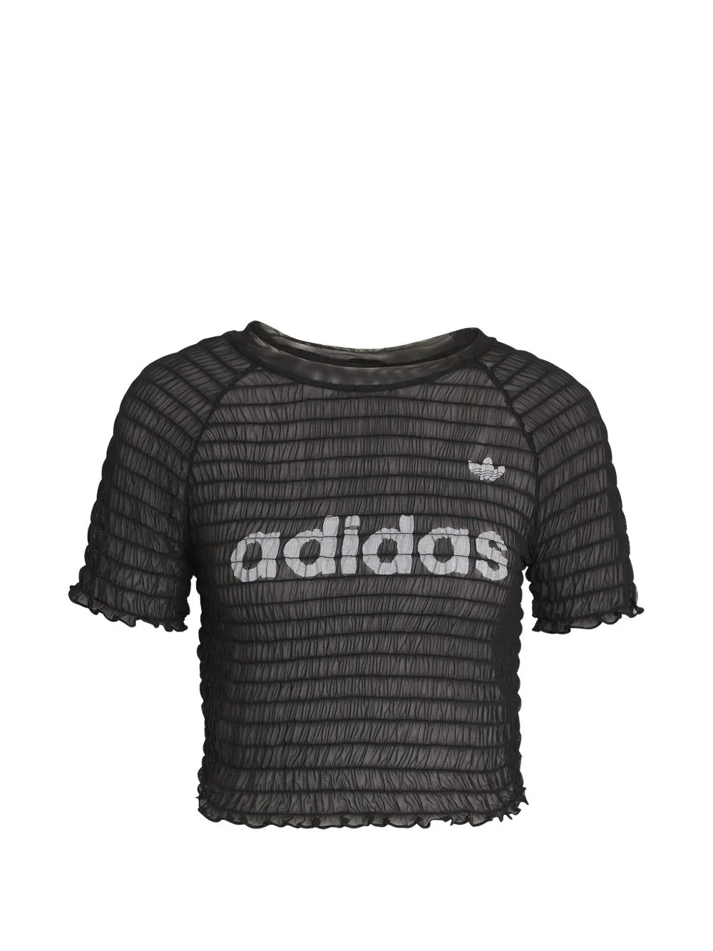 smocked logo T-shirt Highlights - Black - Smocked design - Logo detail - Round neck - Ruffled hem Imported Composition Polyamide 93%, Elastane 7%