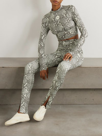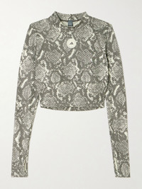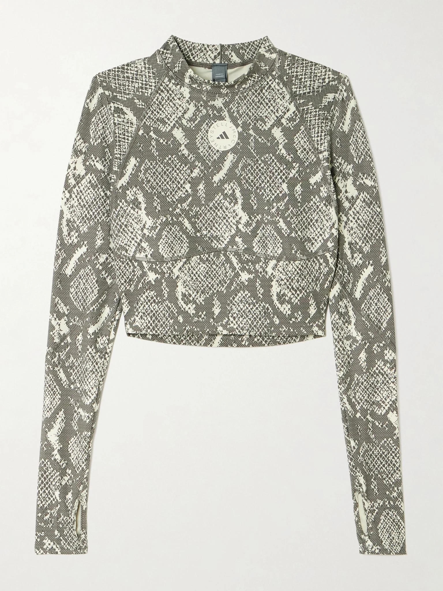 adidas by Stella McCartney's crop top is printed with a cool snake print. It's cut for a close fit from stretchy recycled fabric and has long sleeves with thumbholes. Complete the set with the matching leggings in our edit. Size & Fit - Fits true to size, take your normal size - Designed for a very close fit - Cropped length - Lightweight, stretchy fabric - Model is 180cm/ 5'11" and is wearing a size Small Model measurements: - Bust: 80cm/ 31.5" - Waist: 65cm/ 25.5" - Hip: 89cm/ 35" Details & Care - Snake-print stretch recycled-polyester - Slips on - 73% recycled polyester, 27% spandex - Machine wash - Designer color: Almond Milk-Smc / Charcoal