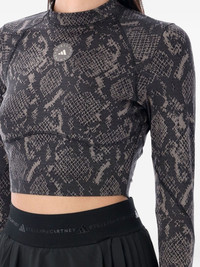 snake-print long-sleeve top Highlights - Charcoal grey - Snake print - Long sleeves - Cropped length Imported Composition Recycled Polyester 73%, Elastane 27% Washing instructions Read Manufacturer Guidelines