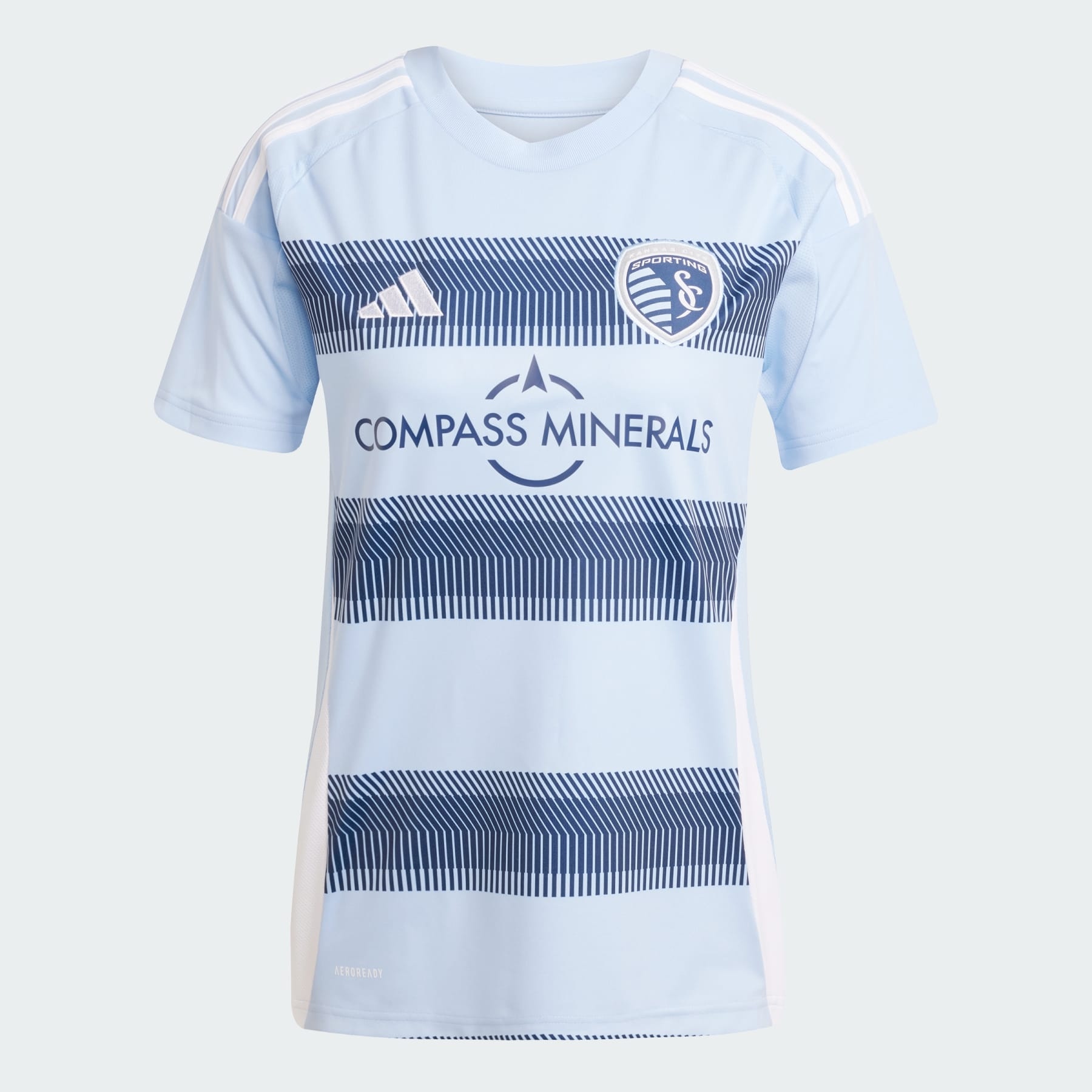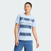 A comfortable jersey that brings SKC fans together, made with recycled materials. Celebrating Kansas City's unique geography. The signature hoops on this adidas Sporting KC jersey are created from angled lines that mirror the state border dividing the city. Whether you're from Missouri, Kansas or a world away, AEROREADY will keep you dry while you shout for your team. A sewn-on crest ensures your soccer fandom is clearly defined. This product is made with 100% recycled materials. By reusing materials that have already been created, we help to reduce waste and our reliance on finite resources and reduce the footprint of the products we make. Details - Regular fit - Crewneck - 100% polyester (recycled) - AEROREADY - Side mesh inserts - Sporting Kansas City sewn-on crest - Imported - Product code: IV9879 - Product color: Glow Blue