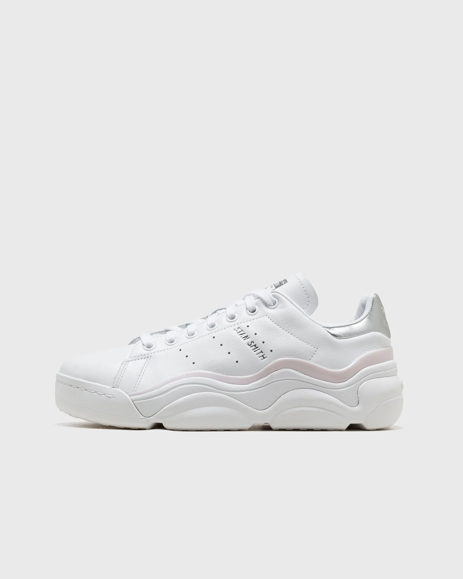 These adidas Stan Smith Millencon shoes bring classic comfort to a design that's equal parts sporty and out of this world. A shiny TPU wave wraps around the shoe, pairing the synthetic upper with a wavy midsole. Sleek metallic heel tabs complete the look with a futuristic flourish. A playful twist on an iconic design, these shoes stay rooted in their origins while pushing into innovative new territory. - Lace-up closure - Synthetic upper - Textile lining - Rubber outsole Article number: ID6977 Gender: women Color: FTWWHT/CLPINK/SILVMT Material: 30% Rubber, 70% Leather