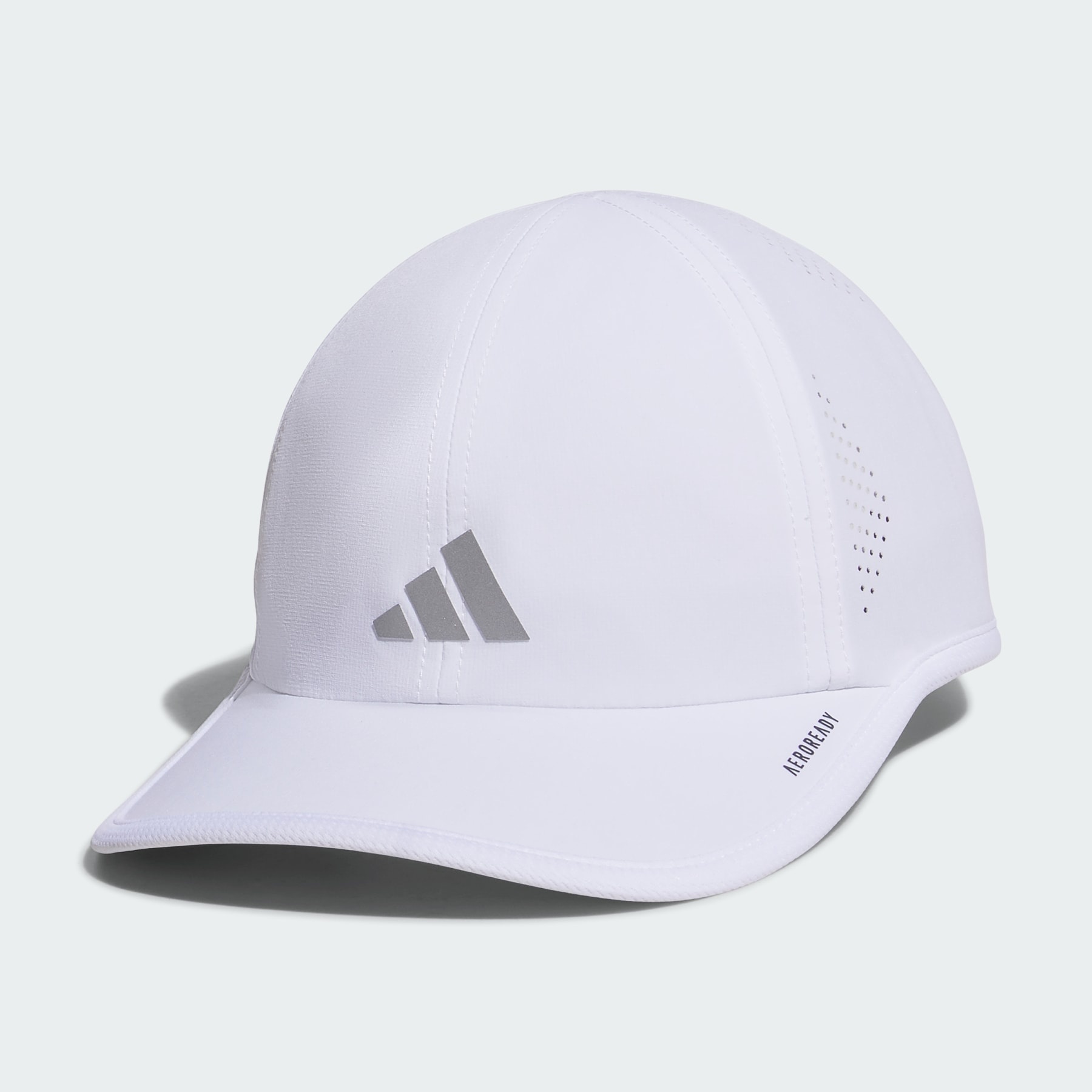A breathable and lightweight hat with a reflective logo. From long runs to laid-back weekends, this adidas hat keeps you comfortably under shade. Made from lightweight fabric that's perforated for an airy feel, the relaxed cap helps you stay cool and dry, whatever your plans. A reflective logo shines in low light. Adjust the fit to your liking and you're ready to go. Details - Recycled polyester - Engineered perforation - Hook-and-loop back closure - Reflective logo - Imported - Product code: IU9192 - Product color: White / Silver Metallic