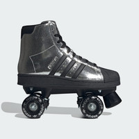 Silver metallic roller skates for a fun ride. Hit the rink in these statement roller skates from adidas. They're designed with a rounded shell toe and serrated 3-Stripes for the authentic style of the adidas Superstar shoes. The high top silver metallic upper is made from crackled leather. Padding inside keeps you comfortable while cruising. The skates come complete with a front brake and adidas Superstar shoes branding on the wheels. Details - Regular fit - Lace closure - Coated leather upper - Textile lining - Rubber outsole with wheels - Front brake - Imported - Product code: JH5522 - Product color: Silver Metallic / Core Black / Cloud White