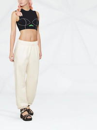 tapered track pants Adidas presents a casual staple in the form of these off-white track pants. Crafted from a blend of BCI cotton and recycled polyester, this laid-back pair is designed with an elasticated drawstring waistband and ankle cuffs, ensuring superior comfort and creating a balloon-style leg. Highlights - Off-white - Bci cotton-recycled polyester blend - Tapered leg - High waist - Elasticated waistband - Two side slit pockets - Elasticated ankles Imported Composition BCI Cotton 70%, Recycled Polyester 30% SIZE & FIT Model measurements Height 5 ft 10 in(1.78 m) Bust/Chest 32.28 in(82 cm) Hips 35.03 in(89 cm) Waist 23.22 in(59 cm) FittingInformation This piece fits true to size. We recommend you get your regular size Designed to be loose over the leg with a fitted waist and hem Made with a mid-weight fabric