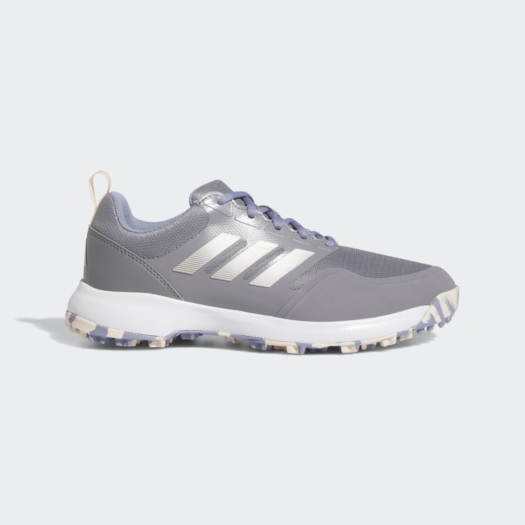 Performance spikeless golf shoes made in part with recycled materials. Step up to the tee with confidence. The adidas Tech Response 3.0 Golf Shoes blend step-in comfort with the support you need to push your game. From the grounded feel of its spikeless design to the easy-walking flex of an X-Traxion outsole and Bounce cushioning, the Tech Response puts performance in a shoe you can wear all day. Tune out the noise, and climb the leaderboard. Made with a series of recycled materials, this upper features at least 50% recycled content. This product represents just one of our solutions to help end plastic waste. Details - Regular fit - Lace closure - Water-resistant textile and synthetic upper - Textile lining - Bounce midsole - Traxion outsole - Upper contains a minimum of 50% recycled content - Imported - Product code: GV6902 - Product color: Grey Three / Silver Metallic / Silver Violet
