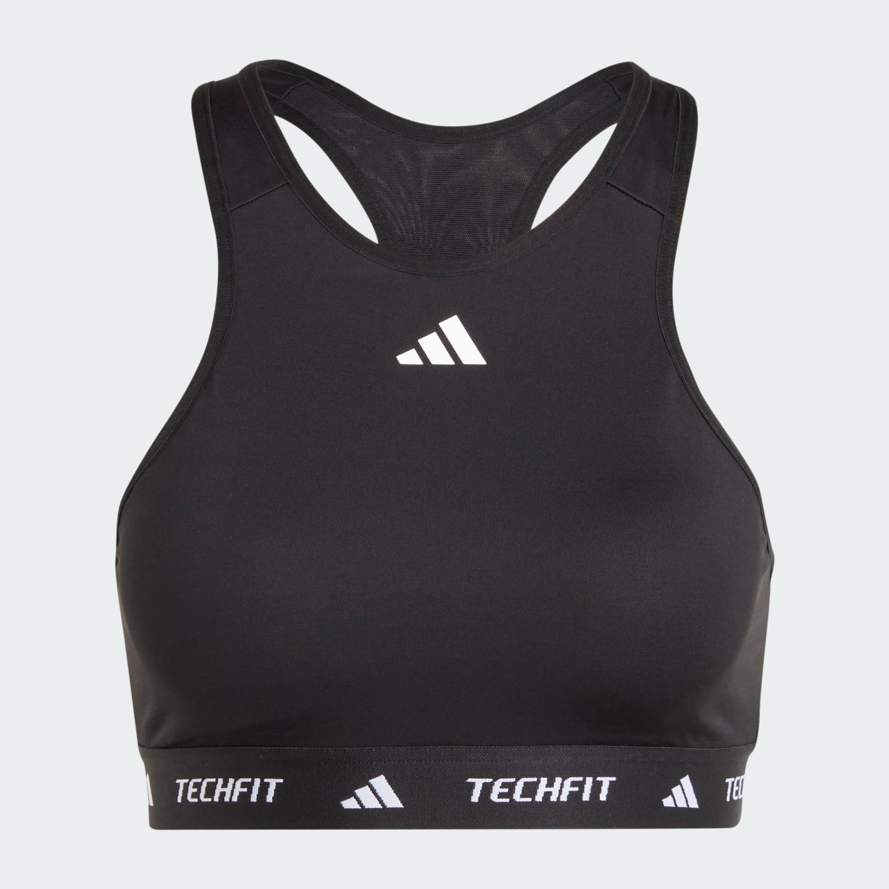 A compression high-neck workout bra made in part with recycled materials. This medium-support bra is designed for athletes who demand zero distraction during intense workouts. With Techfit compression to enhance your performance, power through dance or volleyball with confidence. adidas AEROREADY keeps you dry for nonstop training. With a high neck for extra coverage, this bra moves with you so you can crush your goals. This product is made with at least 70% recycled materials. By reusing materials that have already been created, we help to reduce waste and our reliance on finite resources and reduce the footprint of the products we make. Details - Tight fit - High neck - 73% recycled polyester, 27% elastane interlock - Sleek and compressive feel - AEROREADY - TECHFIT focuses your muscles' energy - Internal back pocket - Removable padding with grip dots - Low-to-medium compression - Imported - Product code: IT2401 - Product color: Core Black