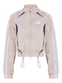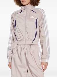 three-stripe cropped track jacket Highlights - Light brown - Three white stripes - Zip fastening - High neck - Cropped length - Drawstring hem Imported Composition Recycled Polyester 100% Washing instructions Read Manufacturer Guidelines