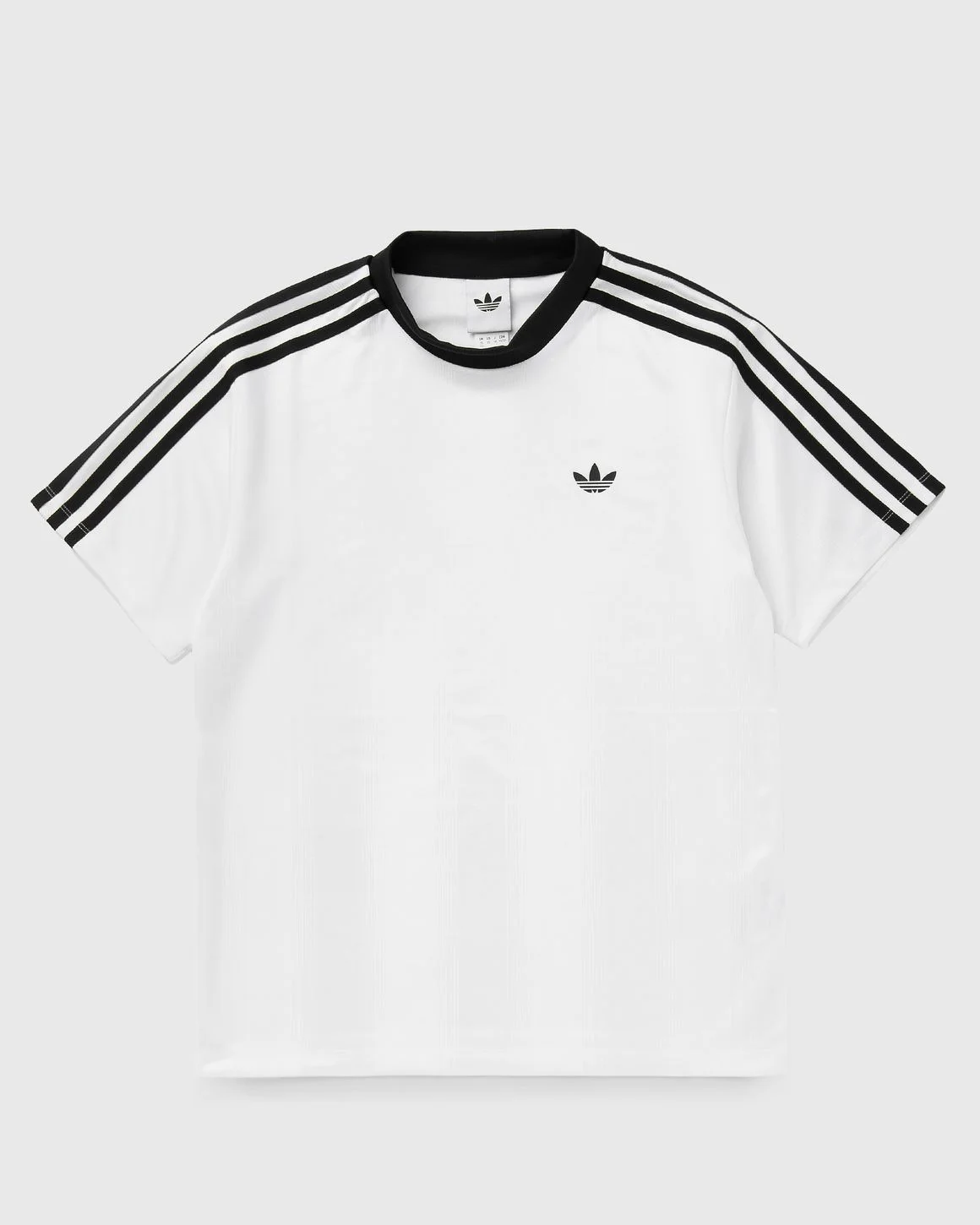 The adidas Adicolor Football Jacquard Tee features a unique jacquard texture that adds a subtle soccer vibe to the classic 3-stripes sleeves. The loose regular fit with ribbed crew neck ensures comfort and casual chic, while the subtle Trefoil logo on the chest underlines the label's typical charm. - Ribbed collar - Relaxed fit - Short sleeves This item is partly made of certified, recycled and sustainable materials, reducing the global amount of waste and conserving primary raw materials. Discover a wide range of sustainable items now at BSTN! Article Number: JV9647 Gender: Women Color: white Material: 100% Polyester