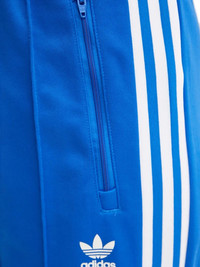 three-stripe track pants Highlights - Blue - Three side stripes - Zip fly - Side zip pockets Imported Composition Cotton 52%, Recycled Polyester 48% Washing instructions Read Manufacturer Guidelines