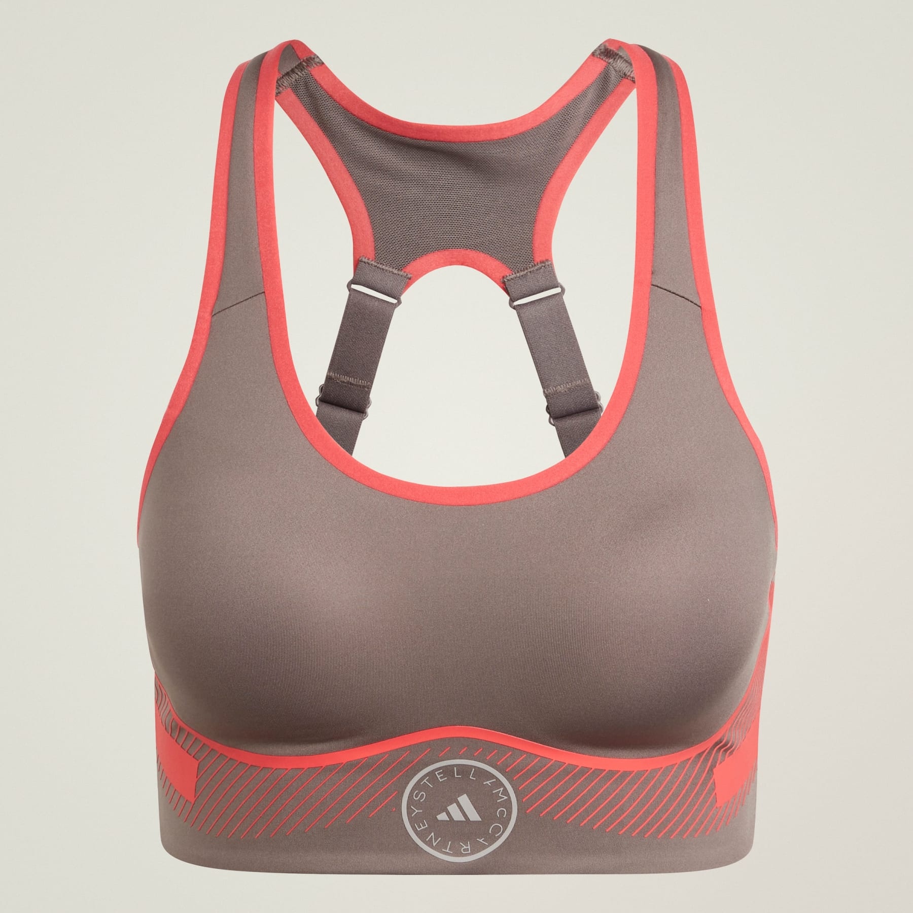 A high-support bra made to push your limits. Go full speed ahead in this high-performance bra from adidas by Stella McCartney. It delivers full support so you feel secure as you push your pace and extend your miles. Removable pads and adjustable straps let you find the look, fit and comfort that works best for your body. Signature chevron lines evoke bold energy as you push through personal bests. Details - Tight fit with high support - Hook closure - 79% polyester (recycled), 21% elastane - Mesh lining - Adjustable straps - adidas by Stella McCartney logo - Made with at least 70% recycled materials - Imported - Product code: IW9864 - Product color: Charcoal
