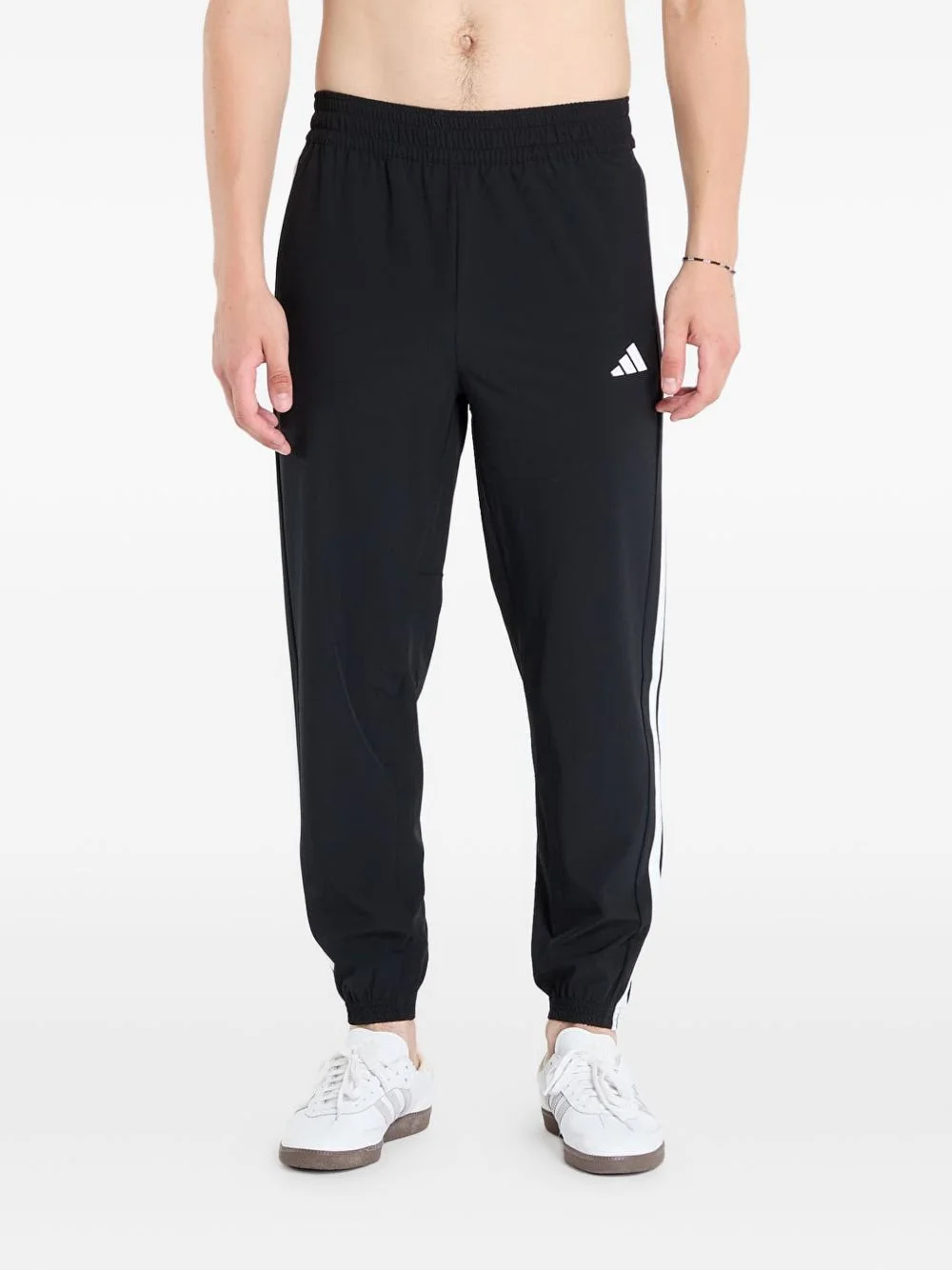 Train Essentials 3-stripes woven track pants Highlights - Black - Regular fit with mid rise. Imported Composition Recycled Polyester 87%, Elastane 13% Washing instructions Read Manufacturer Guidelines