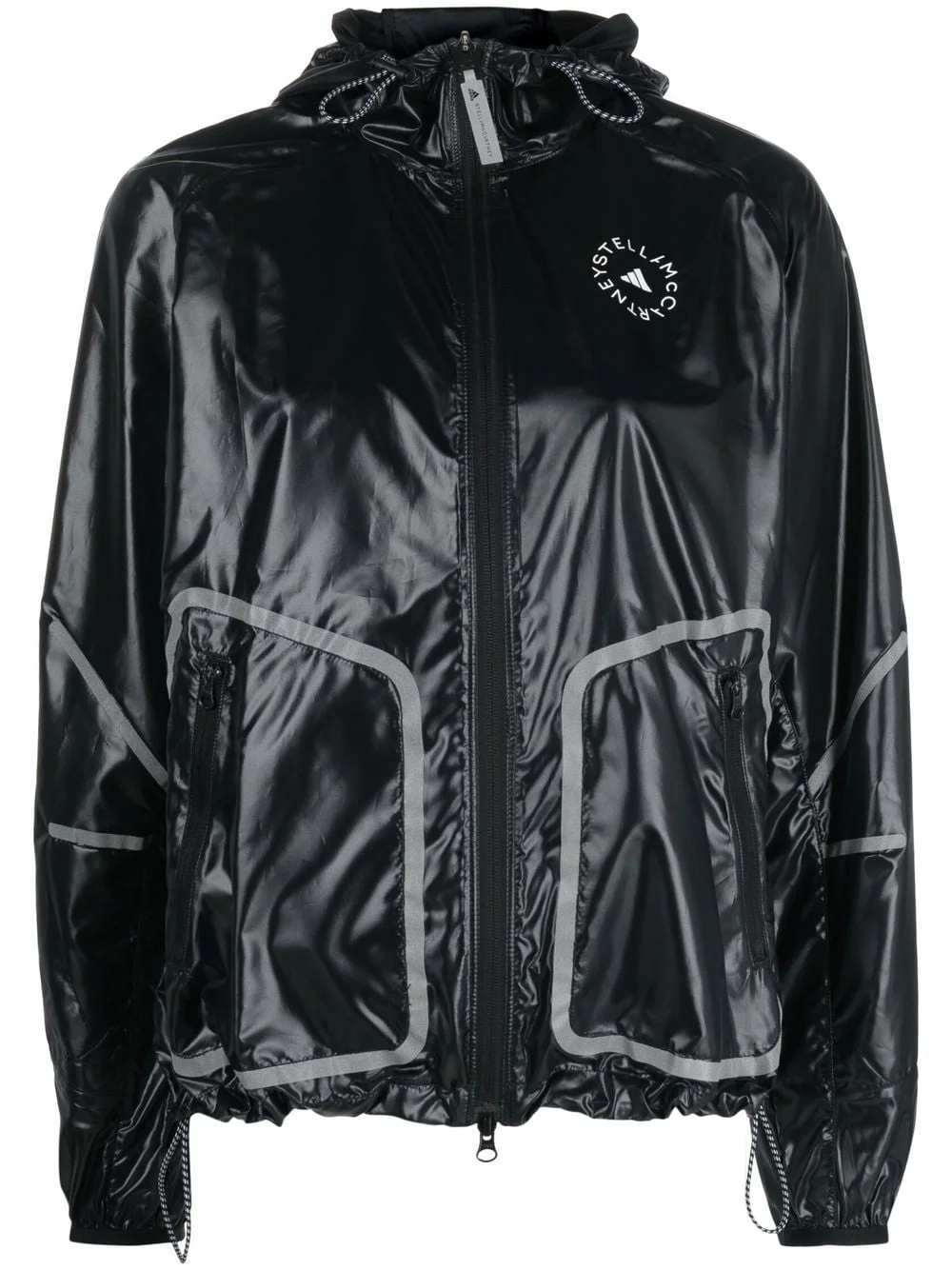 zip-up hooded jacket This jacket from adidas by Stella McCartney boasts a functional focus, thanks to a drawstring hood and drawstring detailing to the rear. Meanwhile, a high-shine finish reflects a striking aesthetic. Imported Composition Recycled Polyester 100% SIZE & FIT Model measurements Height 5 ft 10 in(1.77 m) Bust/Chest 32.7 in(83 cm) Hips 35.4 in(90 cm) Waist 23.6 in(60 cm) FittingInformation This piece fits true to size. We recommend you get your regular size Cut for a loose fit Made with a mid-weight non-stretch fabric